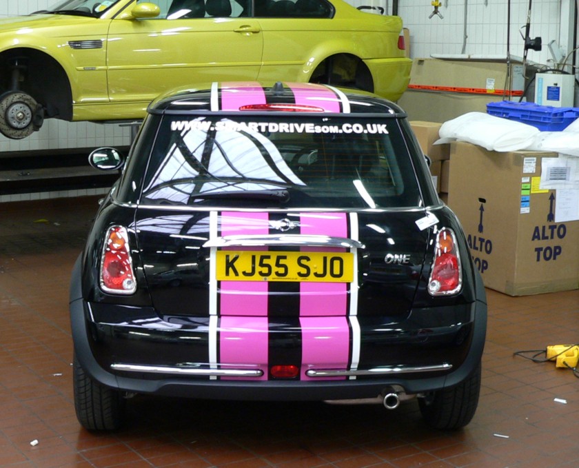 The mini looks good, definitely stands out which is ideal …. my best mate would love that car, stripes especially … she is a pink addict!!