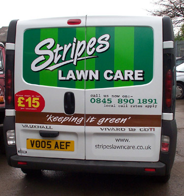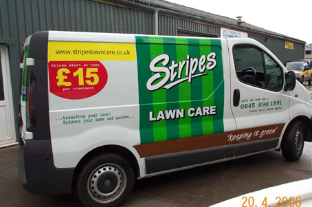Home › Forums › Sign Making Discussions › Gallery › vehicle graphics: stripes lawn care