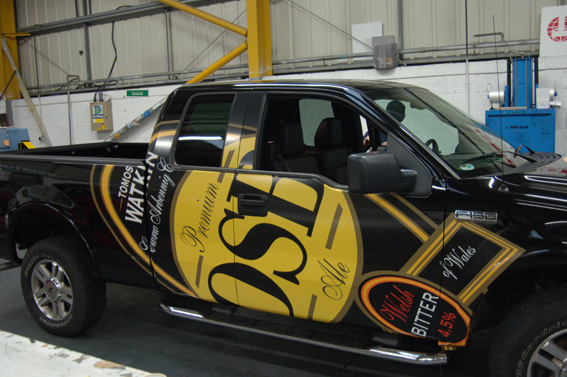iv just started vehicle wrapping , need to get trained properly though , hopefully got a german pro coming down this week to show me how lol , heres my first attempt on a ford truck for a local brewery. what do you think ? the windows are done too , but took this photo before i applied lol