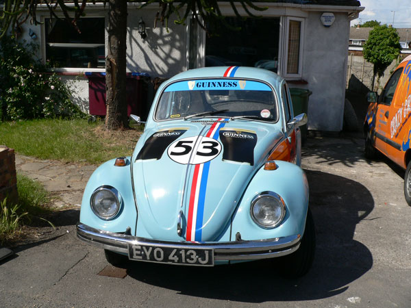 It would have looked nice with my empty pint glass on there instead. 😉 It looks like Herbie…wasn’t he white though? Funny idea. Nice work.