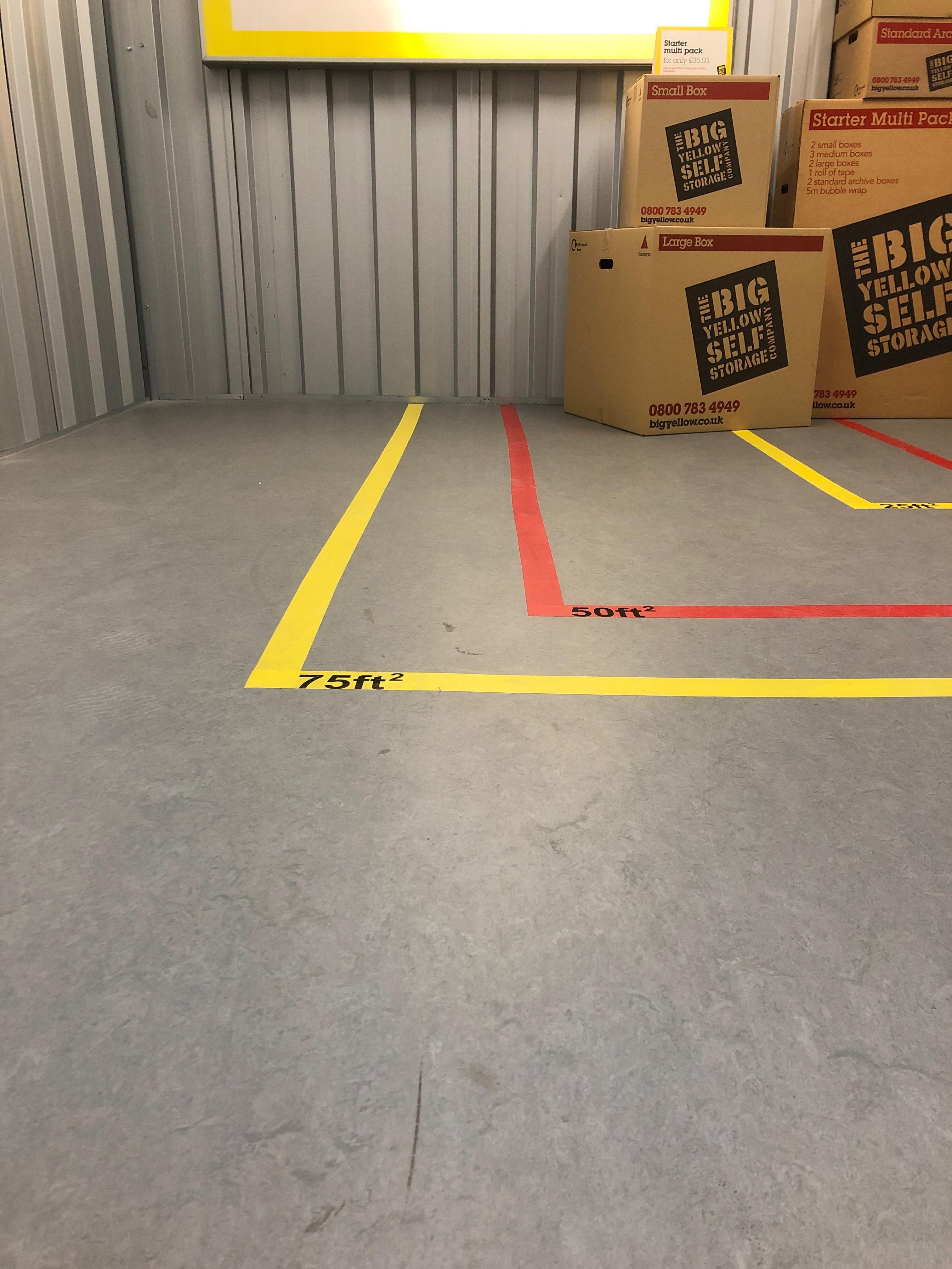 The vinyl floor is laid by the shop fitters, this used to be just a painted concrete floor but the company’s specifications have changed, and I have been asked to provide the single line floor markings to mark out the room sizes for storage.