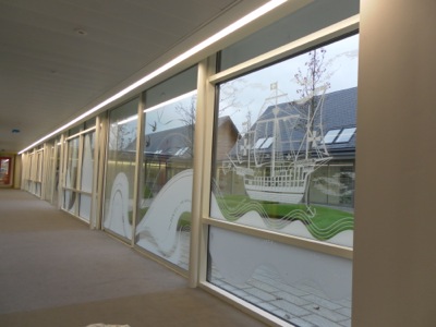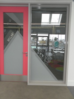 Recently completed a massive window graphic installation at a school, it consisted of a courtyard of over 200sqm of white etch, grey, chrome and a few small pieces of optically clear print due to fine detail. We had 3 weeks to complete from start to finish before Christmas (we finished at 12 on the 24th 😮 ) Long nights and early mornings wasn’t fun 😕