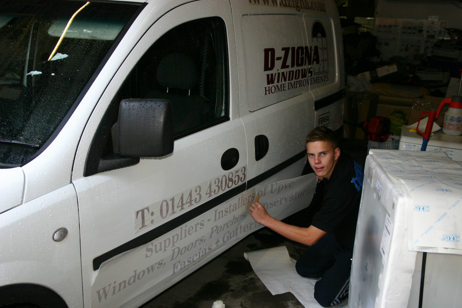 Try taking a few digital photos of the van & superimposing the layout (how I initially do most of my stuff) – and it practically guarantees a sale when they see it on THEIR van and not just a line drawing – and you’ll also see potential problem areas, locations of badges etc.