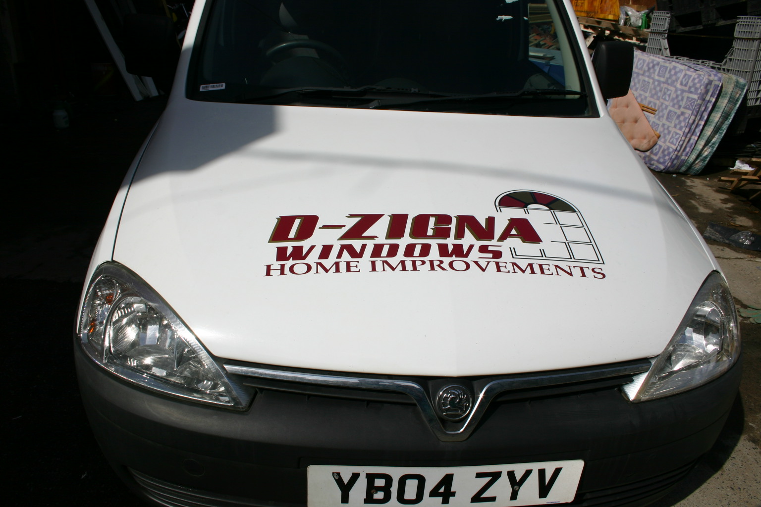 That looks better scott. Would it look better if you moved the D-ZIGNA up to the middle of the panel and the had the arched window comming out of the rear end circle with phone numbers in. Just drop the arched window down a bit too, move the web address over to middle of panel too.