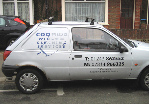 Posted by Marcella Ross on 1 February 2007 at 23:39I have a customer who has a new Fiesta van, in white. He’s asked me to come up with a design which has his van looking dirty with a squeegee cleaning a broad stripe down it with his name etc in the ‘clean’ area. Now what he doesn’t want is a wrap ……….. he wants to keep the cost down to a minimum 😕