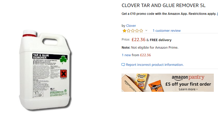 quote David Hammond:Tardis tar & glue remover from Autosmart for us.
