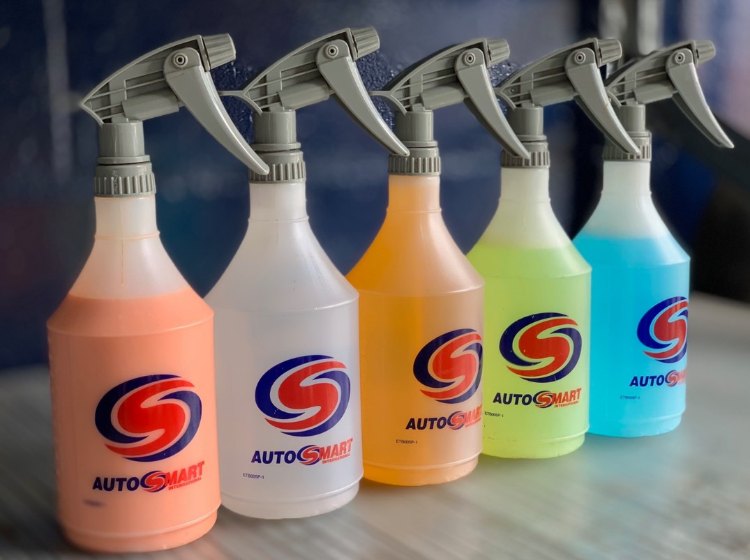 The first one is a product called tango and good for trims after we have wrapped a van, the clear is prep tone, the orange is surface cleaner from spandex, the yellow is G101 and the last blue one is easy apply for when we apply ppf foils or wet application of etch etc