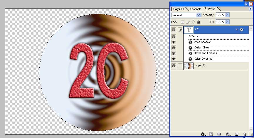 4:Then use ZigZag in the Filters options, that creates the ripples.5: Just a case of typing the 2C in the font and putting on a white Drop shadow