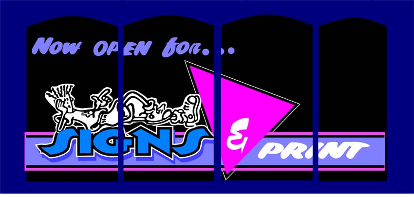 Posted by Bill Dewison on 20 February 2004 at 22:11After being inspired by Terry Bull’s excellent ‘Window Splash’ I’ve decided to do one on my shop window, get my shop noticed from day one. And why not, I’ve stuck vinyl to everything else in the shop, I may as well start on the glass 😉
