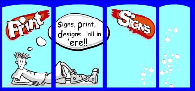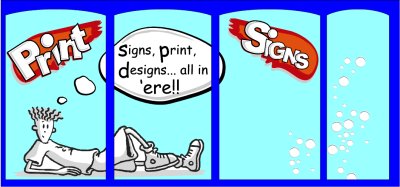 I’m not precious about this design, although I like the large Fido chappie, but I added in the bubbles on one side as thats where the window angles towards the door and I thought it’d be smart to overlay my opening times in standard black arial text.