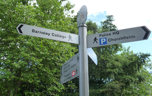 Signage from William Smith helps pedestrians and motorists get straight to the point in Barnsley.