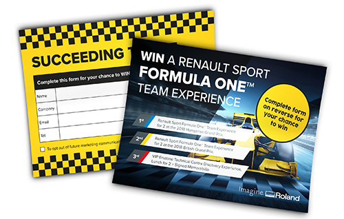"The Roland DG presentation at Sign and Digital UK is all about the amazing quality, speed and results our users get from Roland printers and cutters – all attributes reflected in Renault Sport Formula OneTM Team’s operations," says Rob Goleniowski, Head of Sales, Roland DG. "These amazing prizes will just add to the excitement on stand H30."