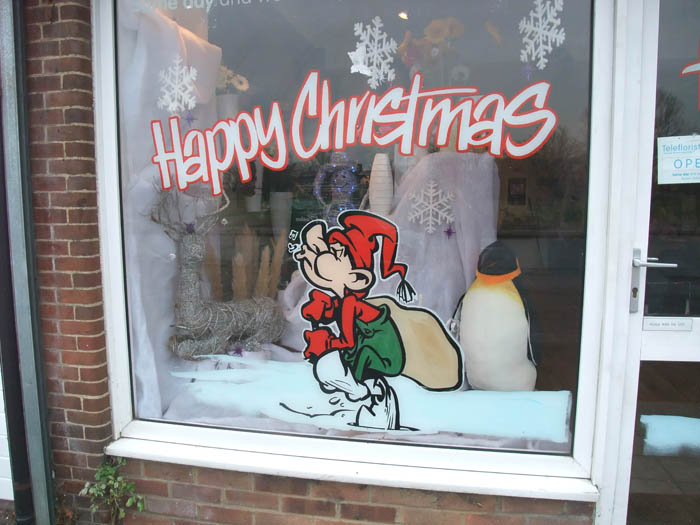 Posted by Terry Bull on 18 December 2008 at 21:32Christmas window splash mix of one shot paint and vinyl