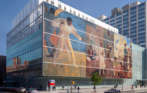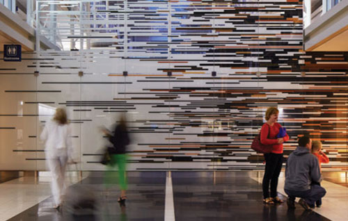 Dip-Tech’s glass can be seen in many places, like Chicago O’Hare International Airport’s newly refurbished Terminal 5, where the company produced a 4,000 square foot (370 square meter) “curtain” of digital ceramic printed glass designed to make the experience of going through security checkpoints more pleasant and aesthetic, along with beautifying the entire terminal, said Greg Saroka, president of Goldray Industries, the architecture firm that worked on the terminal. “We worked through all the various color and design options until one met all expectations. Using the Dip-Tech solution, we were then able to fabricate this highly comprehensive, detailed project exactly how it was conceptualized and drawn by the architects,” he said. Dip-Tech glass is also on display in the facade of Harlem Hospital in New York City. The building was refurbished several years ago, and to strike a dramatic note, the exterior of the building was decorated with a glass mural facade, duplicating works of art that depict the struggle of southern US slaves for freedom. The glass was made to specifications by manufacturer PPG Industries of Pittsburgh — using Dip-Tech’s equipment. The result: A set of murals that appear painted into the windows, with 429 individually printed panes of glass giving viewers a lesson in history and an appreciation of art — and the building has become a tourist attraction.