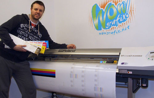 Carmarthen-based WOWgrafix has seen a dramatic improvement in the performance of its wide format machine since going back to using Roland Eco-Sol Max inks in its VersaCAMM VP-540i. The company, which specialises in van sign writing, signboards, vinyl banners locally and nationally via its website WOWgrafix.net, was approached a couple of years’ ago by a salesman offering a ‘like for like’ third party ink solution for the Roland machine at a very competitive price.