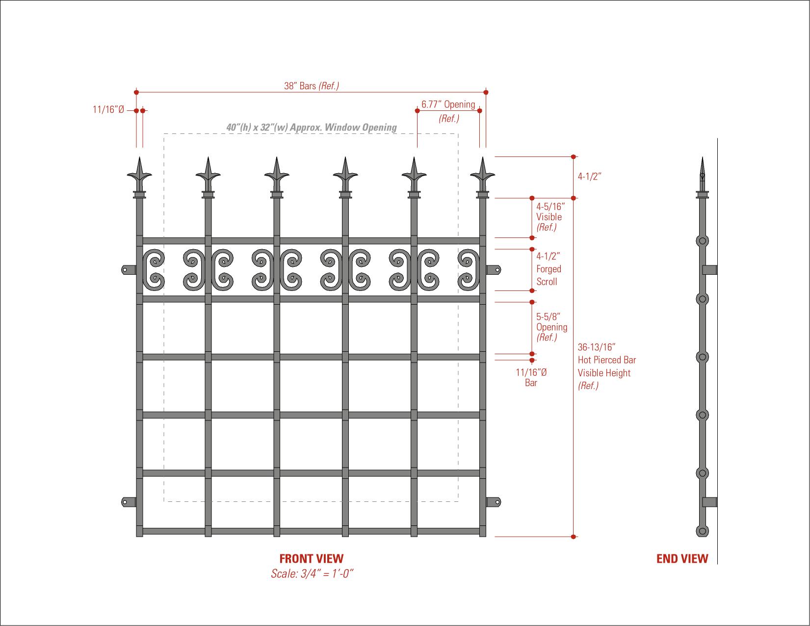 He let me borrow the catalog with all the spec’s in it. So that’s what I used to draw up my design. The bars, finials, Scrolls and Tabs are all premade parts that he would cut down to size (where needed) and then weld together. I didn’t know if it was possible (or feasible really) to take a pre-made bar though and hot pierce it. If it’s more expensive to do that then it’s really not worth it in my case anyway.
