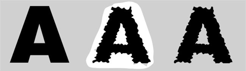 The easiest thing to do would be to take our letter ‘A’ (below left) and draw a freehand squiggle all around it (below centre) and then weld the two together to leave a ‘ragged’ letter (below right). The problem with this is that it just doesn’t look right as no real thought has gone into it – remember things often look right because they are right!