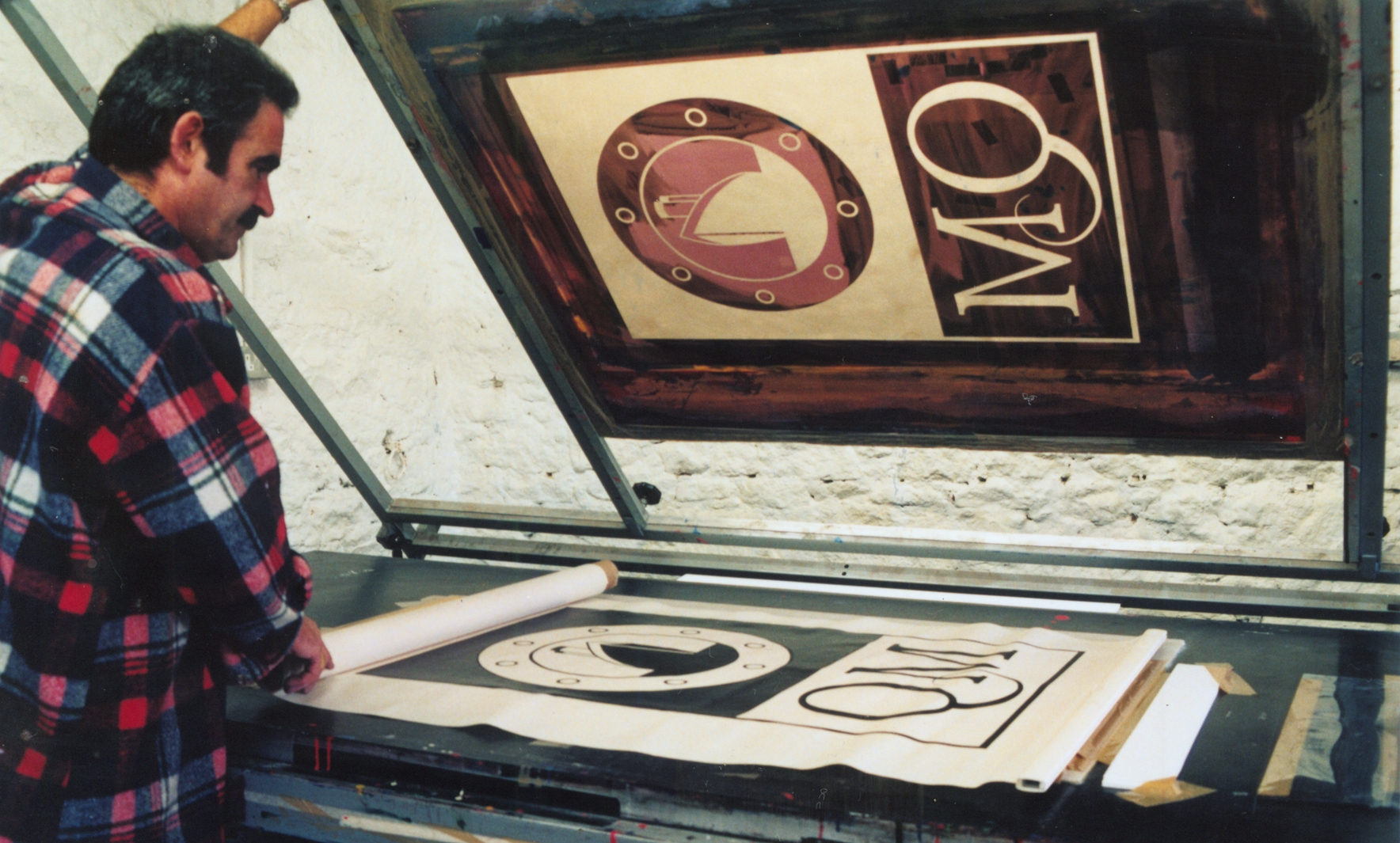 In the early sixties we had very basic stencil methods e.g. for poster work we used a paper stencil, hand cut with a tiny swivel knife blade some of the cut letters were as small as 5mm. The stencil paper was covered in gum with a release paper backing, once cut you ironed the stencil onto the mesh with a damp cloth, after a few minutes you peeled the backing off… carefully then you left with the cut letters open to take the ink.