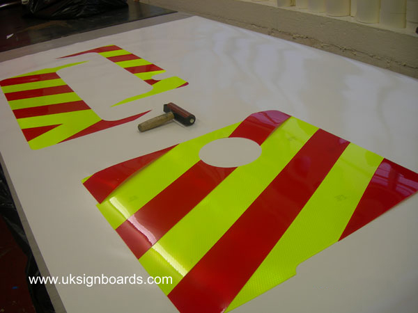 • Diamond grade reflective should be fitted dry. Diamond-grade vinyl is extremely tacky and gives you very little play once initial surface contact is made. when applying always try starting from the middle of a section and working your way outwards, (shortest route)